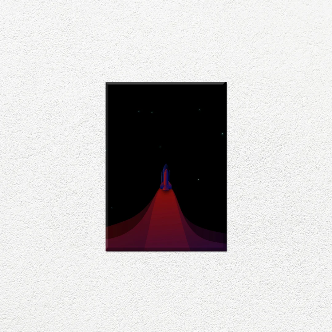 Transforma tu espacio con esta impresionante ilustración de temática espacial que captura la emoción del despegue y la exploración cósmica. El diseño minimalista presenta un cohete ascendiendo desde una superficie vibrante con gradientes que van desde rojos intensos hasta morados profundos, creando un efecto visual cautivador. Perfecto para habitaciones infantiles, espacios de trabajo creativos o cualquier ambiente que busque inspiración y un toque contemporáneo. Esta pieza decorativa combina colores audaces con un estilo geométrico limpio que complementa tanto decoraciones modernas como juveniles. Ideal para quienes aman la ciencia ficción, el espacio y el diseño contemporáneo. Dale a tus paredes un toque futurista y motivador.