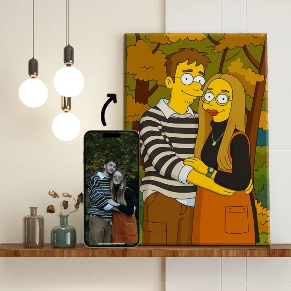 Cuadro personalizado de los simpsons: ¿Alguna vez soñaste con vivir en Springfield? En Homedeko convertimos tu foto favorita en una ilustración personalizada al estilo de Los Simpsons. Realizamos impresiones de alta calidad en vinilo adhesivo, laminadas en acabado mate o brillante, y fijadas sobre retablos de madera MDF para darle un toque único y divertido a tu hogar.