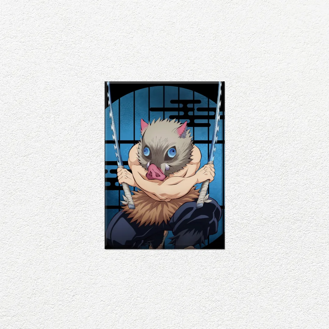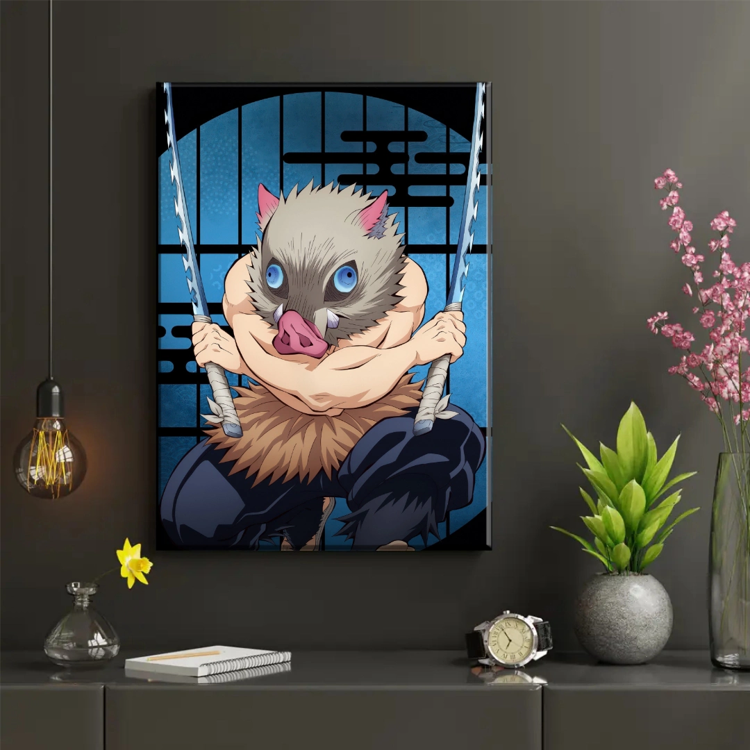 Transforma tu espacio con este impresionante cuadro decorativo de Inosuke Hashibira, uno de los personajes más carismáticos de Demon Slayer. Esta pieza captura la esencia salvaje y feroz del cazador de demonios con su inconfundible máscara de jabalí, sus penetrantes ojos azules y sus legendarias espadas. Los colores vibrantes y el fondo arquitectónico crean una composición visualmente impactante, perfecta para fanáticos del anime que buscan decorar su habitación, sala de estar u oficina. El diseño detallado resalta la personalidad única de Inosuke, añadiendo un toque de acción y personalidad a cualquier pared. Ideal para coleccionistas y entusiastas de Kimetsu no Yaiba.