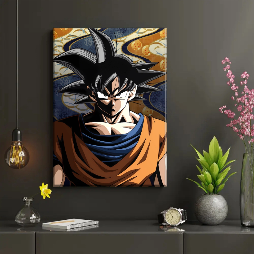 Transforma tu espacio con este impresionante cuadro decorativo de Goku, el legendario guerrero Saiyajin de Dragon Ball. Esta pieza captura la intensidad y determinación del personaje más icónico del anime, perfecto para fanáticos y coleccionistas. El diseño presenta colores vibrantes en naranja y azul, con un fondo decorativo que incluye las místicas esferas del dragón. Ideal para decorar tu habitación, sala de estar, oficina o espacio gaming. Este cuadro le dará un toque único y lleno de energía a cualquier ambiente, celebrando la esencia del anime y la cultura otaku.