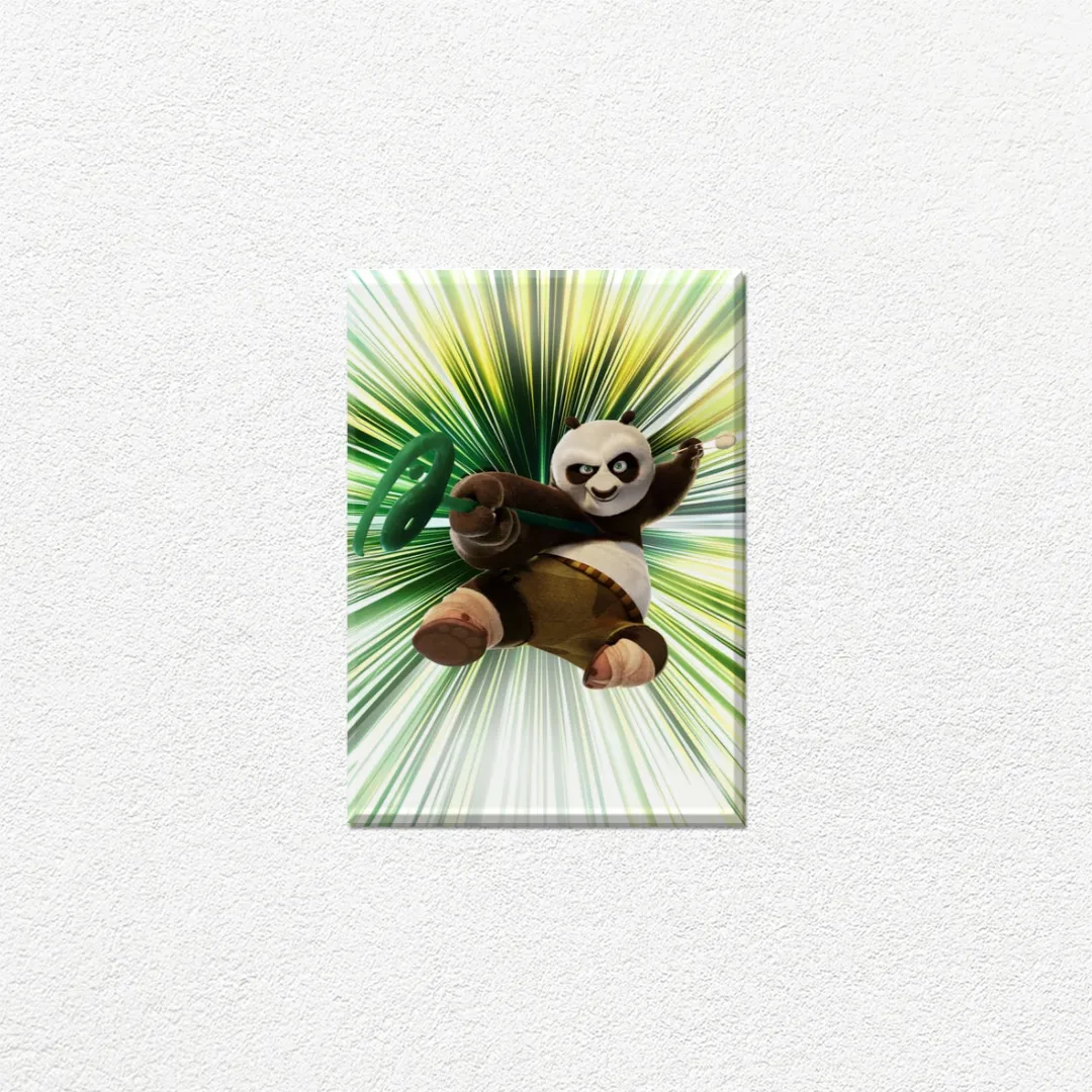 Transforma tu espacio con esta increíble imagen de Po, el legendario Guerrero Dragón de Kung Fu Panda. Esta pieza decorativa captura la esencia del personaje más carismático de DreamWorks en plena acción, perfecto para habitaciones infantiles, salas de juego o cualquier espacio que busque energía positiva y dinamismo. Los tonos verdes y amarillos radiantes crean un efecto visual impactante que atrapa la mirada, mientras que la pose característica de Po transmite fuerza, determinismo y ese toque de humor que lo hace único. Ideal para fanáticos del kung fu, amantes de la animación y quienes buscan una decoración llena de personalidad y movimiento. Dale vida a tus paredes con este cuadro que combina diversión y estilo.