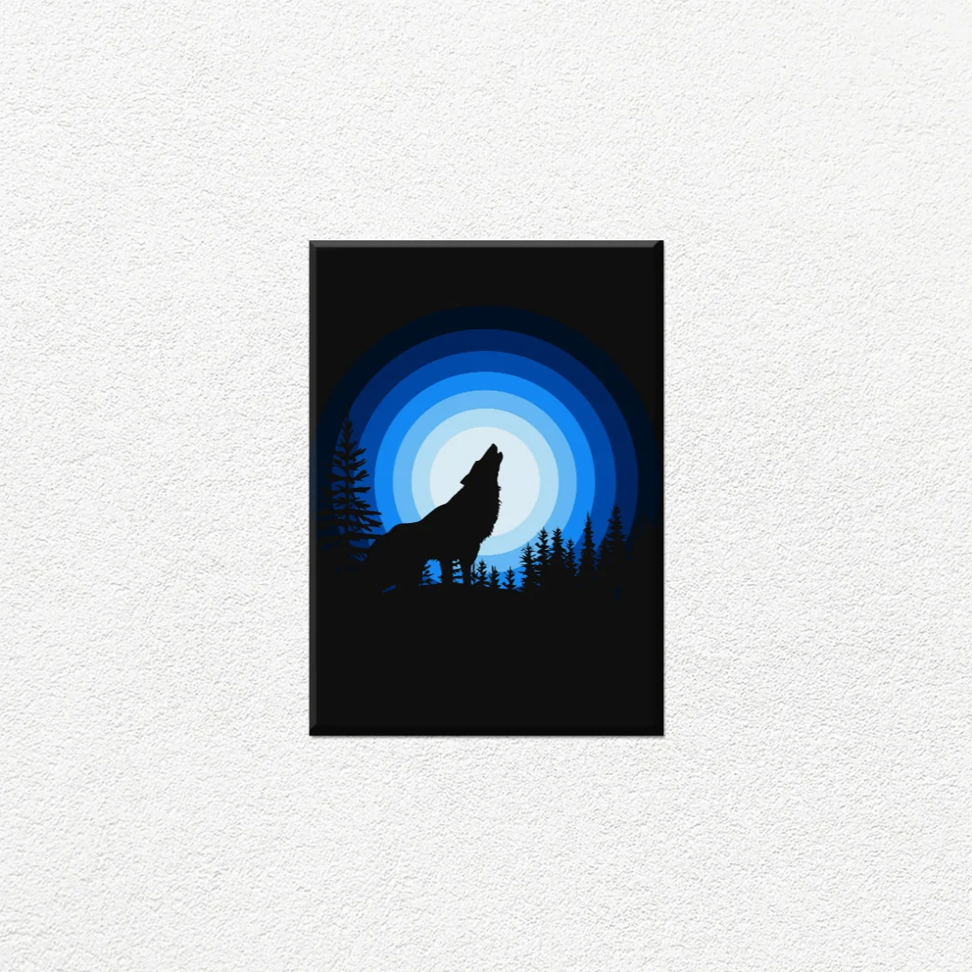 Transforma tu espacio con este impactante diseño minimalista que captura la esencia salvaje de la naturaleza. La silueta del lobo aullando a la luna crea un punto focal dramático, mientras que los círculos concéntricos en tonos azules generan profundidad y movimiento. Ideal para quienes buscan una decoración moderna con espíritu libre y conexión con lo natural. Perfecto para salas de estar, estudios, oficinas o cualquier ambiente que necesite un toque de misticismo y fuerza. Los tonos azules aportan serenidad mientras la figura del lobo representa valentía y libertad. Esta pieza decorativa complementa tanto espacios contemporáneos como rústicos, creando un ambiente único y cautivador.