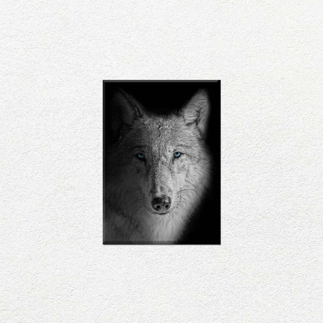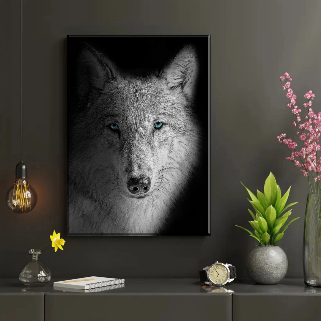 Transforma tu espacio con este cautivador cuadro decorativo que presenta un majestuoso lobo de mirada penetrante. Sus ojos azules hipnotizantes contrastan dramáticamente con el fondo negro profundo, creando una pieza visualmente impactante que captura la esencia salvaje y misteriosa de este noble animal. Perfecto para salas de estar, oficinas o dormitorios, este diseño en tonos monocromáticos con detalles realistas añade un toque de elegancia contemporánea y personalidad a cualquier ambiente. Ideal para amantes de la naturaleza, los lobos y la decoración con carácter. Esta pieza se convertirá en el punto focal de tu espacio, evocando poder, libertad y conexión con lo salvaje.