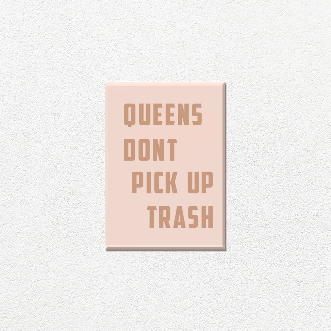Transforma tu espacio con este poderoso mensaje de empoderamiento femenino. Queens Dont Pick Up Trash es una declaración audaz perfecta para quienes valoran su autoestima y no permiten negatividad en sus vidas. El diseño minimalista en tonos tierra y nude se adapta elegantemente a cualquier ambiente, desde tu habitación hasta tu oficina o estudio. La tipografía bold y contemporánea comunica fuerza y determinación, recordándote diariamente tu valor. Ideal para decorar espacios personales, regalo inspirador para amigas o para crear un rincón motivacional en tu hogar. Esta pieza decorativa combina mensaje positivo con estética moderna, convirtiéndose en el punto focal de cualquier pared.
